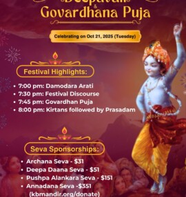 In response to the recent attacks on Sanatani community in Bangladesh, Sri Krishna Balaram Mandir hosted a Harinam Sankirtan on December 1, 2024. This heartfelt event was dedicated to:Expressing solidarity with persecuted minorities in BangladeshPraying…