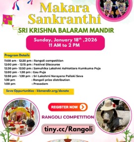 You are warmly invited to celebrate the auspicious Sankranthi Festival at Sri Krishna Balaram Mandir.