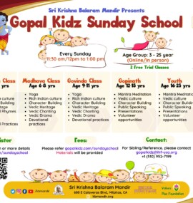 Gopal Kidz Sunday School new term is starting this Sunday, Jan 18th.