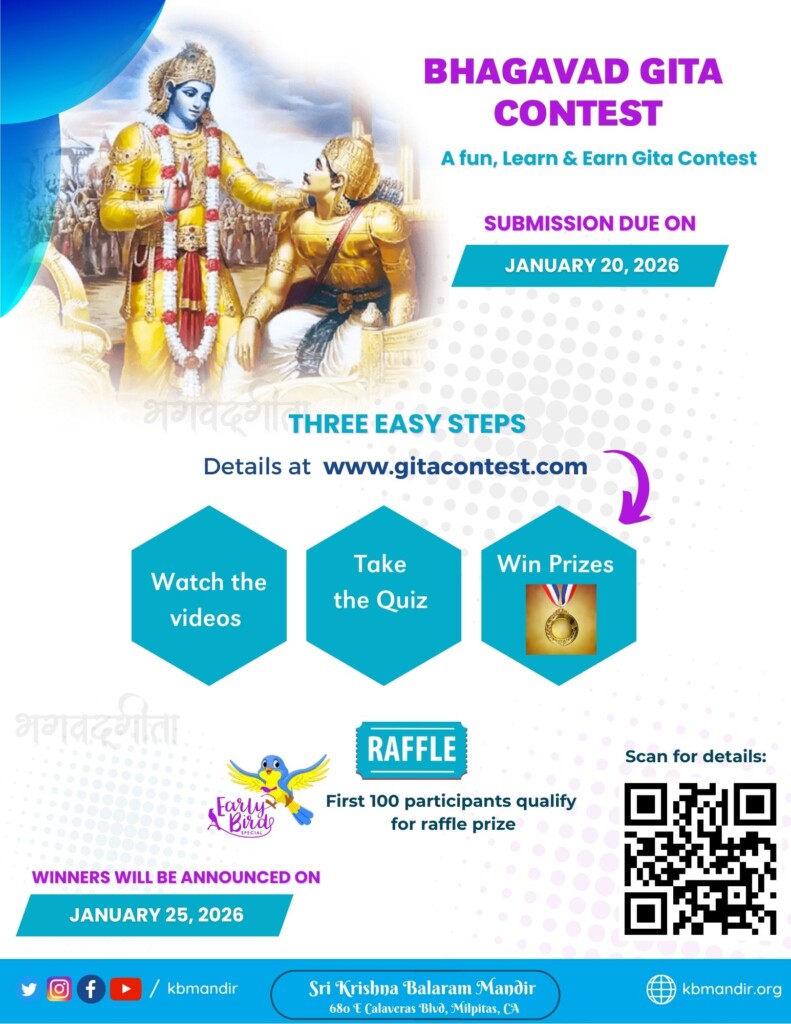 We are excited to launch Bhagavad Gita Contest 2025, an annual global online quiz that helps you learn practical life tips from Gita. All you have to do is watch few short videos and take a quiz by Jan 20th and win exciting prizes.